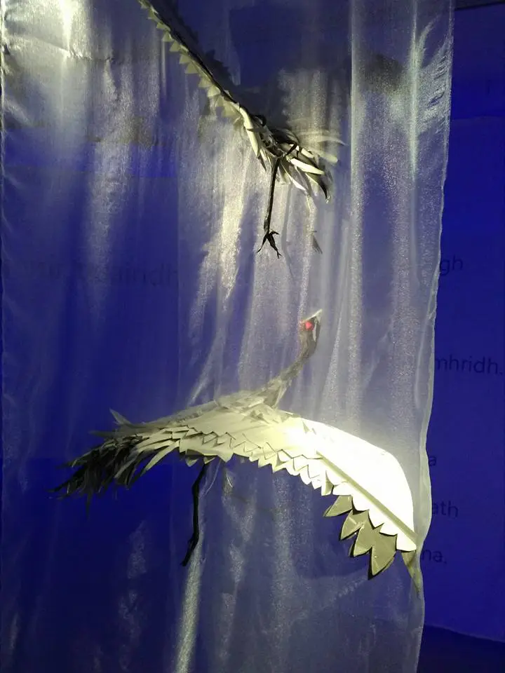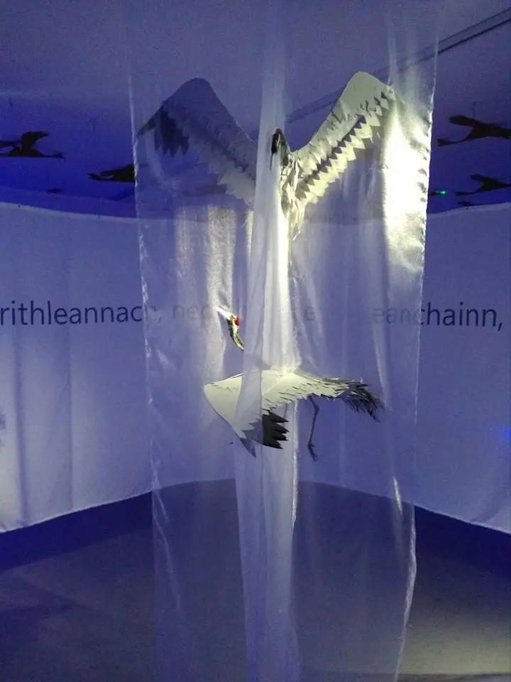 To the right on the wall is a large digital print of the defleshed crows heads from the freezer full of crows overlaid by pages from the Concise Oxford Dictionary, which was opened randomly to reveal words from Lake to Land including Lancashire, my ancestral homeland.