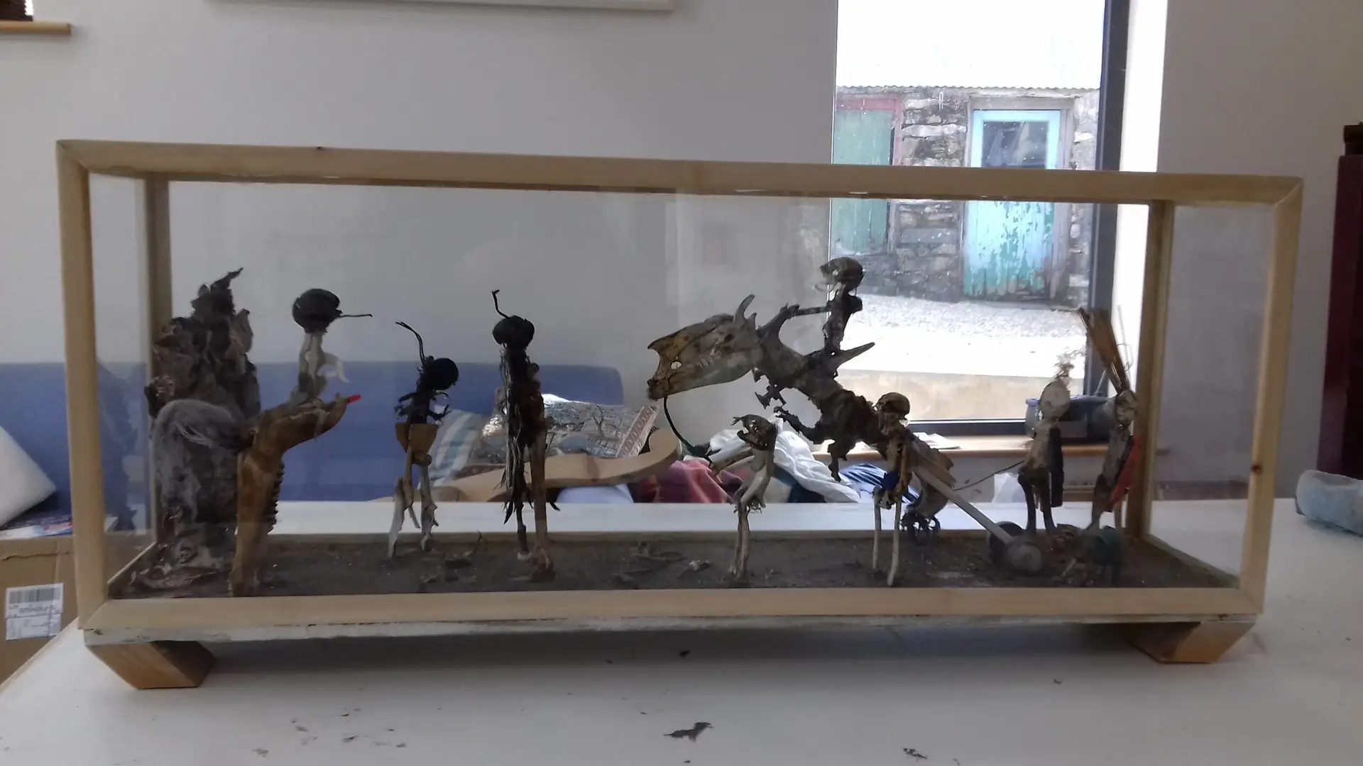 In the small space next to the main gallery are the preliminary composition I made after finding the wind dried crow. I rarely if ever make preliminary work in this way, the wings suggested it to me.